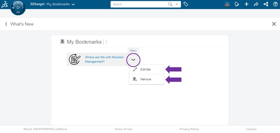 4) Finally, by clicking the down arrow in your bookmark you have the option to remove the bookmark OR to edit the name of the bookmark.