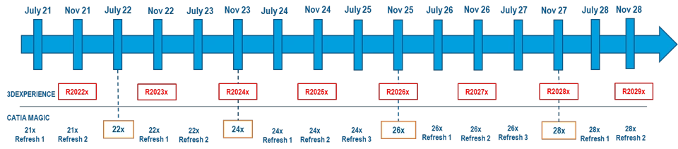 Starting 2022x, CATIA MAGIC release changes every 2 years with up to 3 refreshes for each Release.