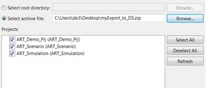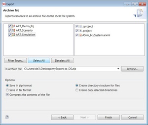 - In the left window, choose all the relevant projects (ARXML, Simulation, Scenario,...)