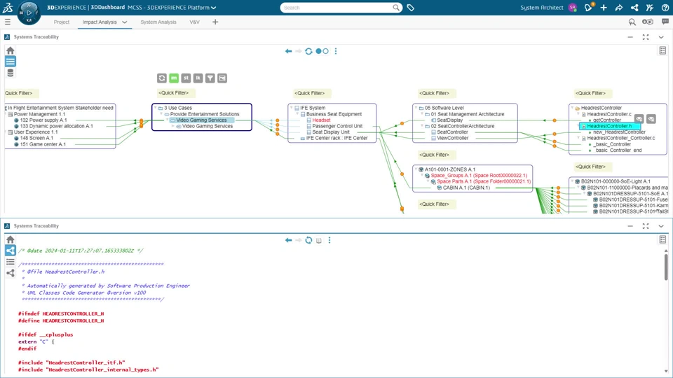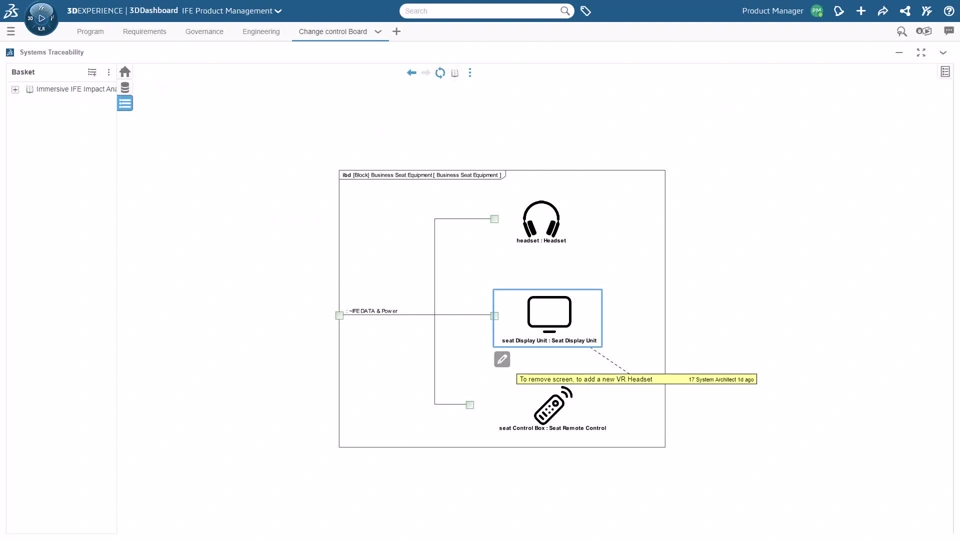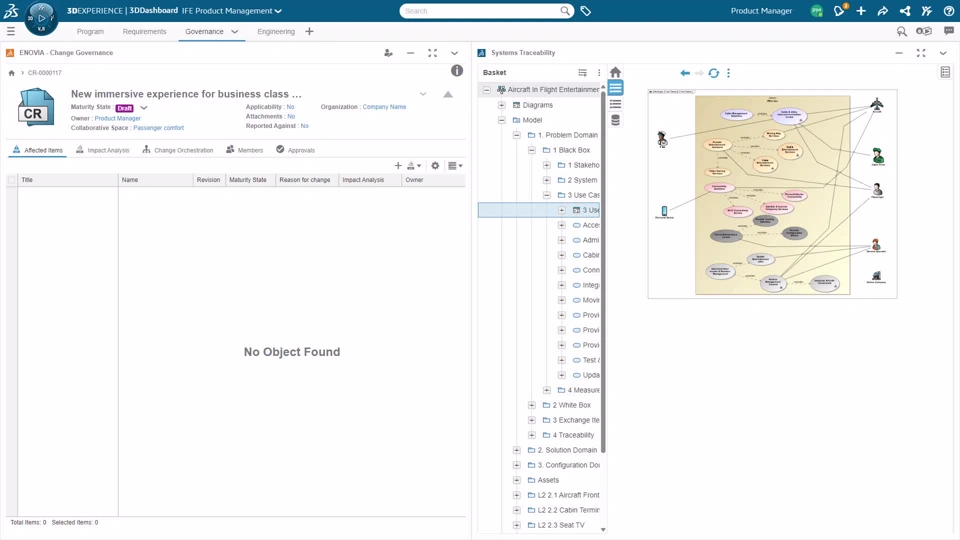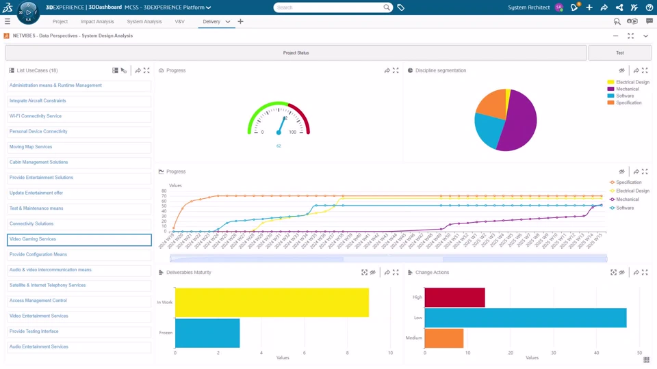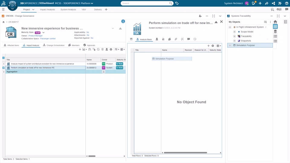 4 | Measure Traceability and impact analysis The system architect is using the 3DEXPERIENCE Platform to collaborate with discipline design by analyzing the impact of the architecture change on the dataset. | |