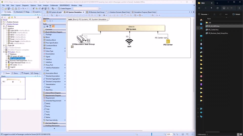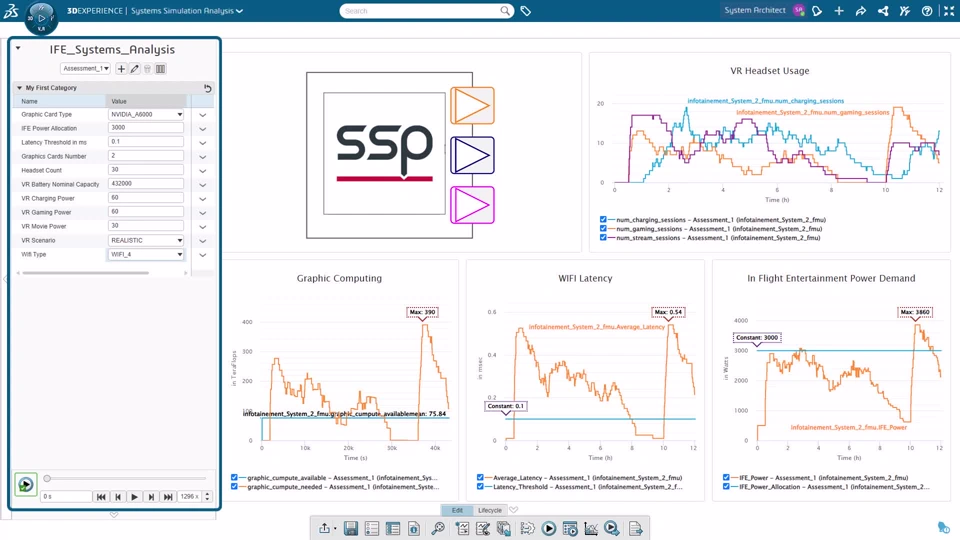 3.1 | Execute Simulation study Magic Cyber Systems engineer Collaborative Designer for CATIA Magic The simulation engineer defines the simulation architecture from the existing system architecture using an isolated branch. She is using FMU as a behavioral model coming from various simulation tool like Dymola, Stimulus or Matlab Those FMU are used to associate behaviors to the architecture elements. She generates an executable file using the SSP standard that can be executed in any simulation solution that is supporting the SSP.