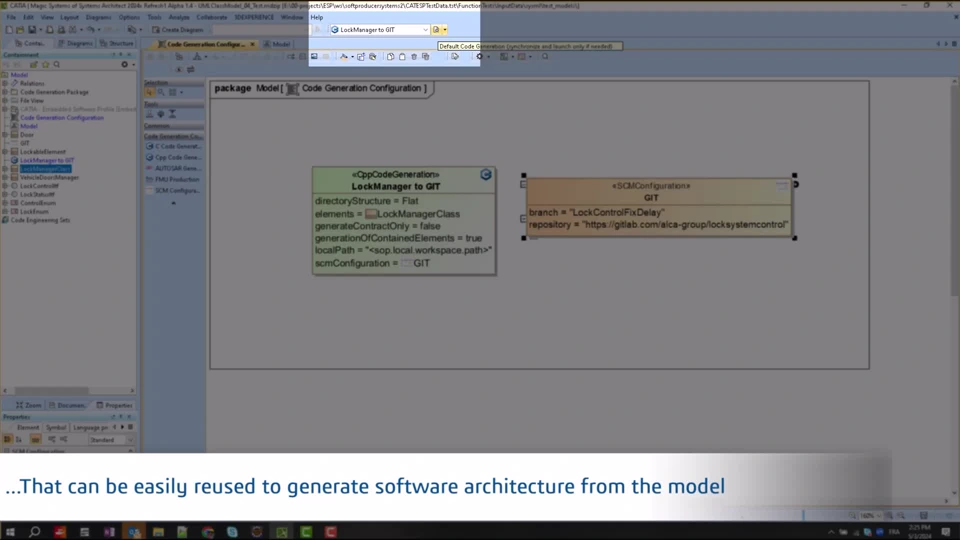 6 | Execute Change Execution Magic Cyber Systems engineer Collaborative Designer for CATIA Magic Agile Governance PlugIn Systems Traceability Analyst The software architect initializes the Agile planning from the software model by creating stories. Those stories are connected to Jira to initiate the agile planning. The traceability is kept between the system element and Jira. So that, they access to the synthesis of the test case and results coming from Jira. Magic Cyber Systems engineer Collaborative Designer for CATIA Magic Systems Software Production Engineer Systems Traceability Analyst The software architect defines the software architecture in UML and generates the code structure in git for the software engineer. The traceability is kept between system model elements and the software code. | |
