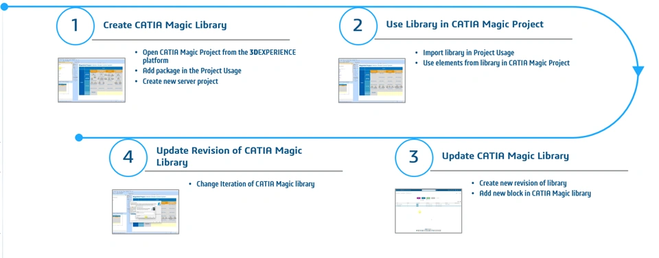 Use Case: Reusing Elements of CATIA Magic Project in Other ProjectsScenario:A systems engineer wants to reuse elements from a CATIA Magic project to other CATIA Magic projects. He adds the project in the Project Usages to create a library and reduce the manual work of creating the same elements repetitively. Actors/Personas:Mark Systems Engineer: Mark is responsible for creating a library of elements that are required to be added in other CATIA Magic projects. John Systems Engineer: John is responsible for updating the CATIA Magic project using the CATIA Magic library. Workflow: