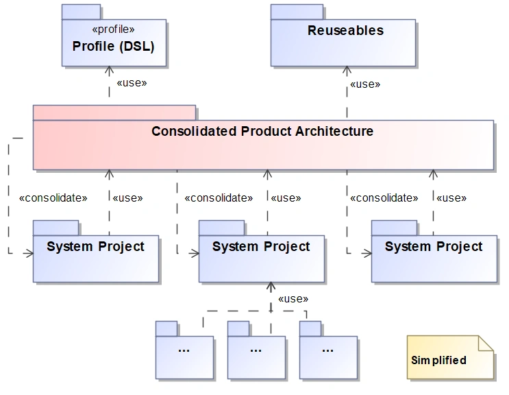 Usually when organizations first adopt the MBSE approach, the focus is on a particular System, usually in the scope of PoC or feasibility study. This System is sometimes a Component or a Subsystem from a standpoint of a much more complex Product. Ultimately, when MBSE scope and maturity reaches a certain level, the question of Configuration and Consolidation has to be addressed.