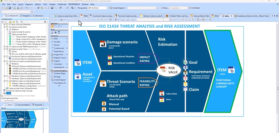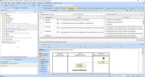 At Dassault Systèmes we propose a methodology that is aligned with ASPICE SYS.2 and SYS.3 for Model Based Systems Engineering. This methodology is called MagicGrid and is based on a standard language System Modeling Language (SysML )[Ref3]