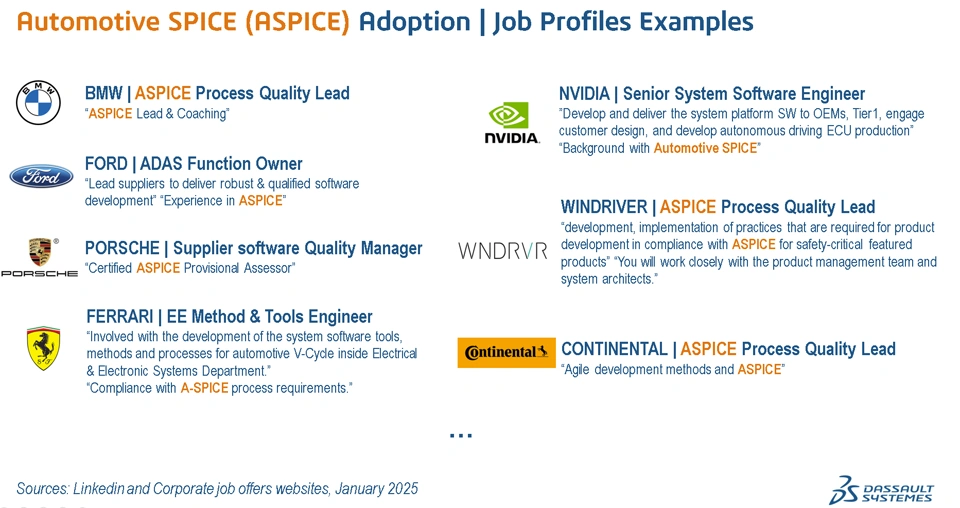Here is some examples of job profiles (from Linkedin and Corporate Job Offers websites, on January 2025) mentioning ASPICE in their description.