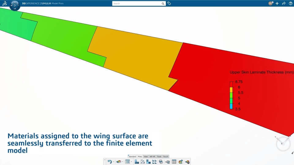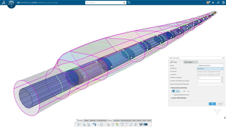 Quick Grid command: Composites materials are used for this concept: laminate definition is assigned to the wing surface