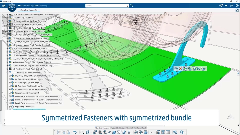Increase Fastener Definition productivity by more than 40% with agile fastening symmetry definition giving the full control over what should be identical versus overloaded after mirroring.