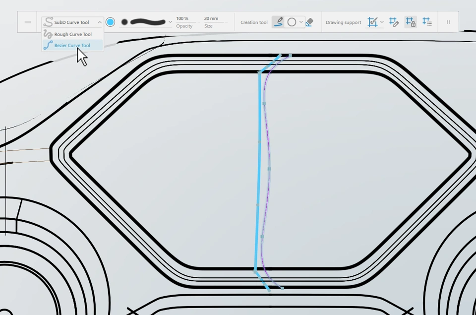 Satisfy both Creative Exploration and qualitative Surface Creation workflows with the co-existence of Subdivision and Bezier curves