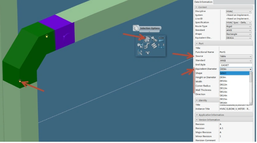 And if you have linked the Part dimension to the Port Attributes – see Parametric HVAC Part creation methodology