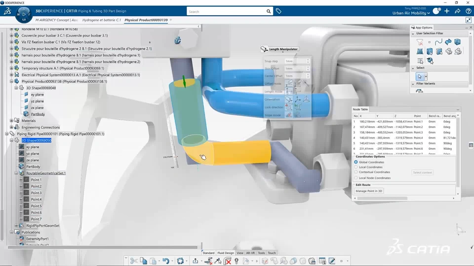 Video 6 - Detail Multidiscipline Engineering | Demo 6 - Detail Multidiscipline Engineering The mobility system architecture helped to define the user journey for each usage and to find links between them. The functional analysis, by simulating different scenarios, allows to design and develop the project most efficiently, by creating parts (such as the door) that take into account the whole vehicle, its usages, its transportation capabilities (terrestrial and aerial), its stakeholders and the global environment. Iterations between CATIA V5 and the 3DEXPERIENCE platform are still possible, so you can import your project from one to another to facilitate collaboration and back and forth between the different teams. At this stage, you can still explore innovative solutions and workable concepts for detailed design and engineering, to make the project as close to reality as possible, for instance, by creating and simulating electrical and fluid components or testing virtual performance of plastic part and mold tool designs with an intuitive simulation assistant. To go further, complex wire harnesses can be designed and optimized in context without the need for physical mockups. User Roles