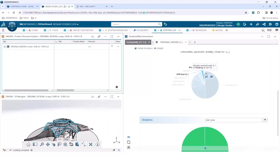 Video 3 - Design for Circularity | Demo 3 - Design for Circularity The hub station is the building that has been created to park e-ways. The systemic approach and the scenario definition identify the operational hub as an essential element for the global experience, because it is the point of contact with the environment and the service. To make this hub resilient, a circular design methodology is implemented to contribute to the hub's global strategy and its innovation, by rethinking shapes, materials and functions. Lifecycle assessment (LCA) applications have been used to analyze the global impact, allowing us to make the right decisions. At the early stage of the design process, we can make adjustments, to transform the conceptual hub into an ecological one, with the integration of more sustainable materials and functions, to make it manufacturable. Globally, this sustainability approach and function is used as an innovation catalyst rather than a constraint in design. User Roles