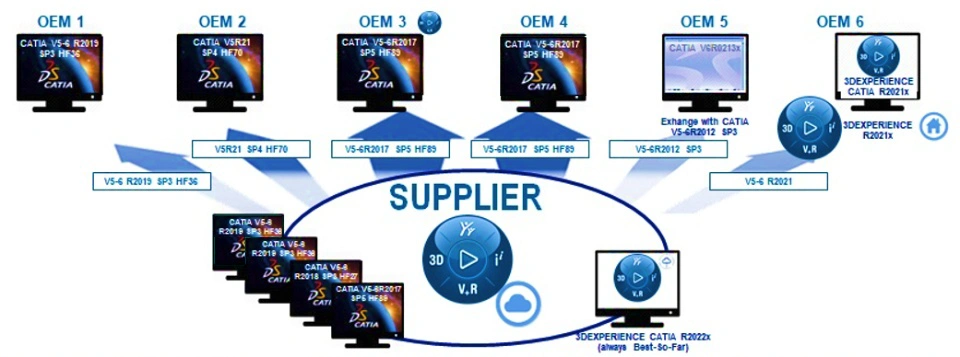 Suppliers need to connect their CATIA V5 to the 3DEXPERIENCE platform for working with OEMs and sharing the accurate product versions with respective OEMs.