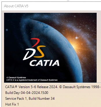 Get information about CATIA V5 release by selecting the About CATIA V5 option from Help.