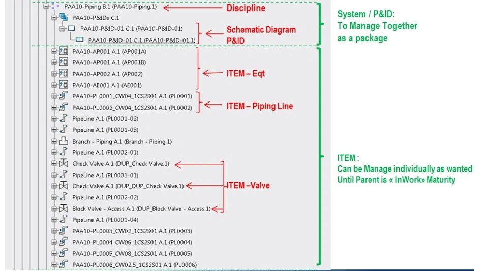 Any PLM Object reference can have different Versions (LogicalReference System, P&ID Sheet, Equipment, LineID, Valves, .... can be versioned)