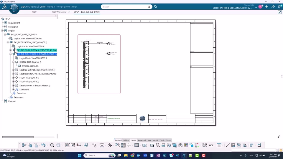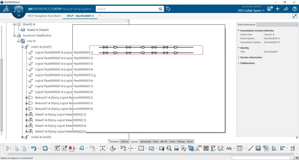 But for P&Id it is a little different. on P&ID or other Schematic document done with CATIA, the object which is used by 3DMarkup is a "Sheet" and not a Logical reference. Because you cannot open a P&ID "Sheet" objects individually in the Native Client to edit it, you must retreive it parent Logical reference to be able to drag&drop it in the 3DEXPErience Native Client to edit it.