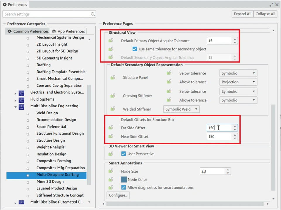 Following Preferences allow you to define the size of the yellow Structural Box used when creating a Structural View.