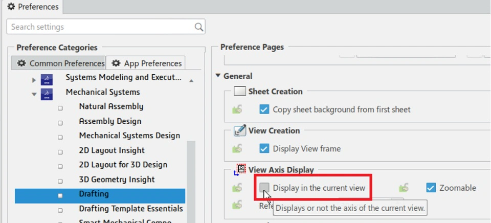 Disable Axis in drawing (avoid extended Frame View to the origin of the model)