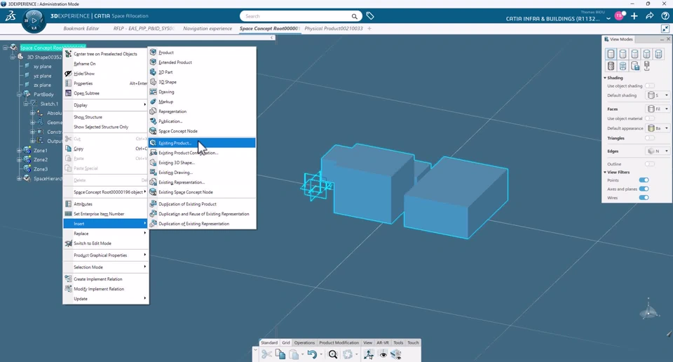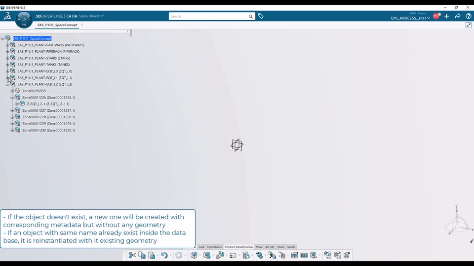 note: it is better to create a Space Concept Root as parent for the 3D Design Space object, this will allow to use the GBS to associate 3DSpace to Logical objects in "Logical Product Architecture" App