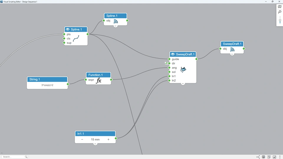 We received few questions regarding the possibility to use "laws", like in CATIA Generative Shape Design (GSD). It's something already supported in few operators such as "parallel curve" and "sweep draft".