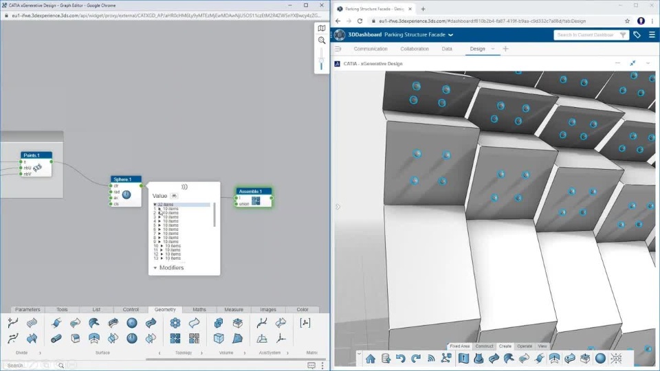 - Create spheres on each point that randomly vary in size to give a non-uniform overall appearance to the facade.