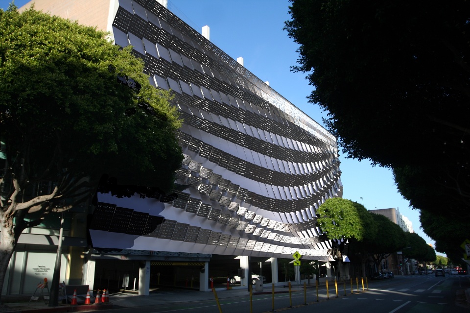 A design in xGenerative Design for a folded and perforated metal façade to augment a typical commercial parking structure.