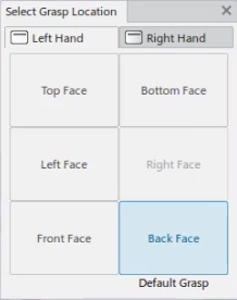 By selecting a side to grasp, a dummy hand will appear to show the approximate grasp on the object: