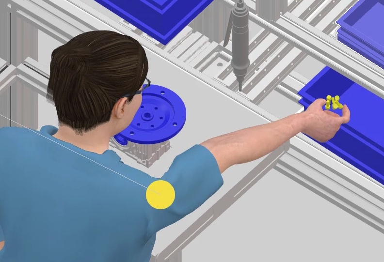 You can do that by clicking on the button on the right of the press in the worker task panel. Then you'll see the list of the part that compose the press. You'll then be able to select the control button and the manikin will on "grasp" this part of the press.