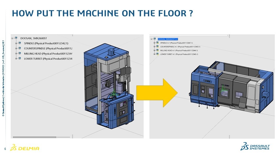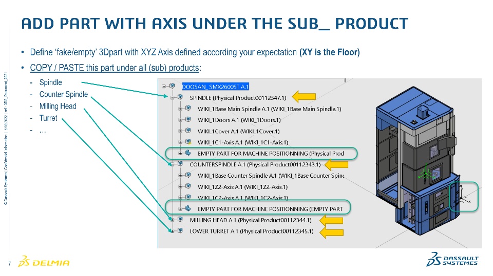 When we receive 3D geometries to create a 3D Machine the machine is often (always for millturn) not well positioned in the 3DEXPERIENCE (as you can see on the picture).