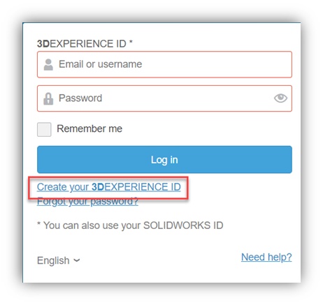 As of April 11th 2023, it is necessary to enter a 3DEXPERIENCE ID to access the webform. If you don't already have a 3DEXPERIENCE ID, one can quickly be created by clicking the link shown below.