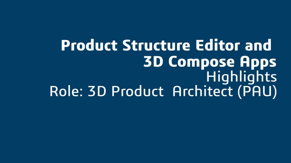 Product Structure Editor | The Product Structure Editor app is used to initiate, derive, and manipulate product structures without the need for CAD. 3D Compose enables visualization and navigation of the product structure in 3D to better understand the impact of changes. |