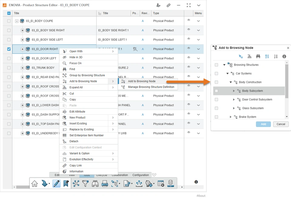Browsing Structure in Product Structure Editor app |
