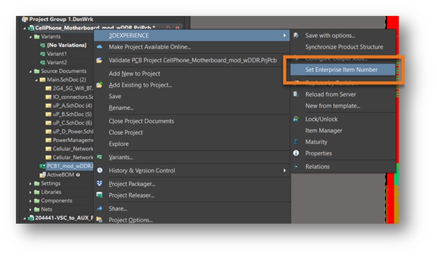 - A new menu entry for setting the EIN is added to the Altium Project Tree which will launch the EIN prompt to set the value in 3DEXPERIENCE
