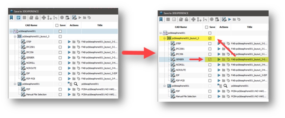- For example: The user includes the GERBER to the save scope. As a result, the PCB will also be selected in the save scope.