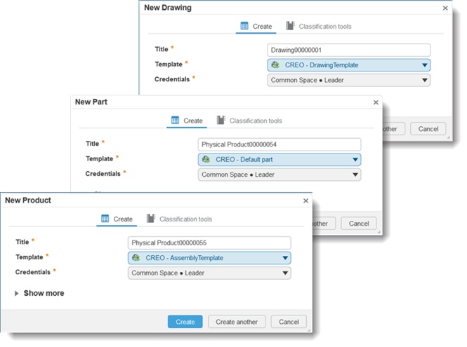 How You can now initiate new CAD designs with pre-defined Creo Parametric design templates for parts, assembly and drawings NOTE: This function will not allow the user to create Physical Product objects of the following types: