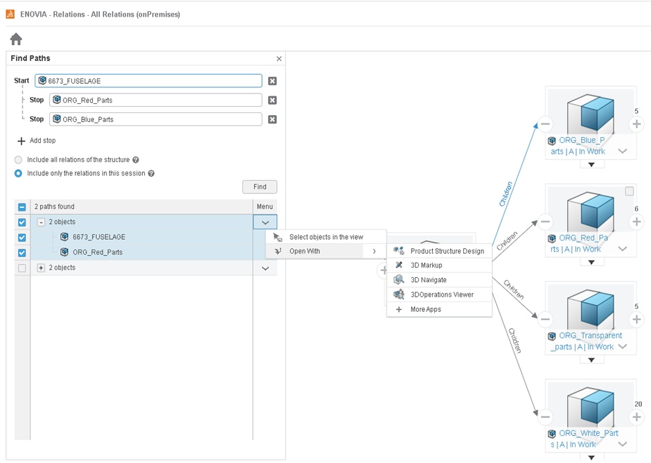 Relations: Opening Paths and Objects in the native app within 3DEXPERIENCE CATIA |