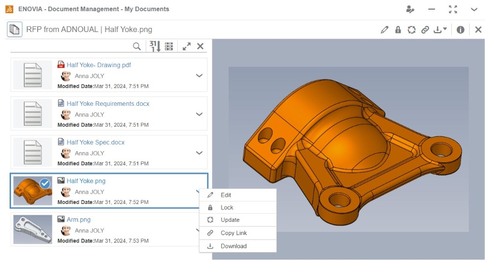 How •A new Navigation Panel is introduced in Preview, that lists all Document Files. •Using the Navigation Panel, you can perform various operations on the document files: •Sort the list of files based on different criteria •Search for file to preview •Perform file operations, such as Edit, Lock, Update, Copy Link and Download.