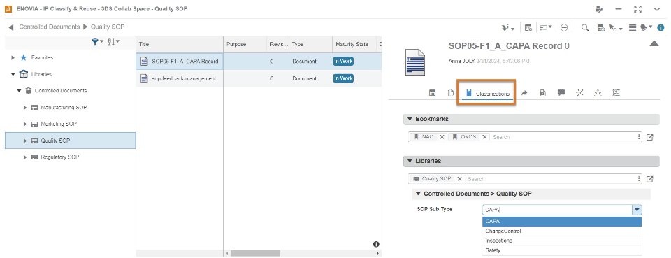 How •A new tab ‘Classification’ is added to the Information panel in the following applications: •IP Classify & Reuse •Bookmark Editor •IP Export Control •Using the new Classification tab, you can perform the following operations on a single selected object: •View the classes and bookmarks the object is associated with •Classify / Declassify •Add to bookmark / Remove from bookmark •View and update classification attributes |