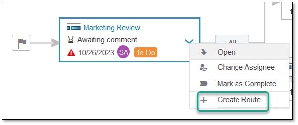 How Once the route is promoted, you as a task assignee, have now the ability to create a sub route from the task itself You can use the sub route to delegate your tasks to others in the organization Note: •Tasks cannot be completed if the tasks in the associated sub route are not completed. •In the Grid view, a new column named “Sub Route Approval Status” is displayed to provide sub-route status. •In the Graph view, a new tile is added that displays the status of the associated sub-route.