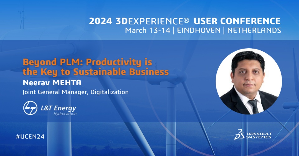 Beyond PLM. Productivity is the Key to Sustainable Business 11:00 – 11:30 | Neerav MEHTA, Joint General Manager, Digitalization, L&T Energy Hydrocarbon |  |