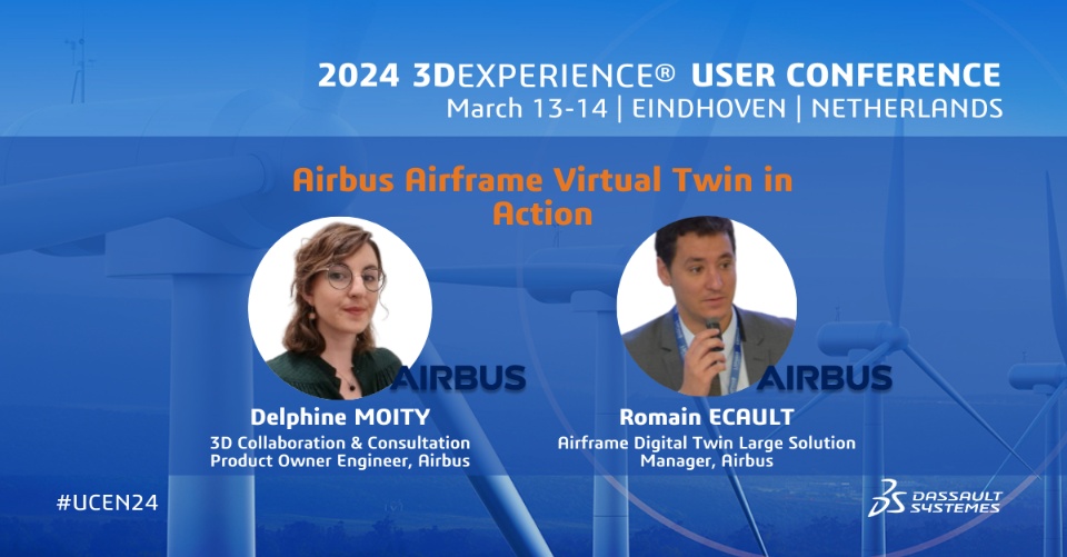 Airbus Airframe Digital Twin in Action 11:30 – 12:00 | Romain ECAULT, Airframe Digital Twin Large Solution Manager Delphine MOITY, 3D Collaboration & Consultation Product Owner Engineer |  |