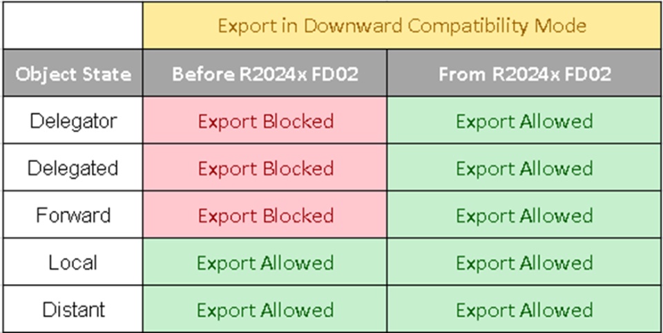 Export in Downward Compatibility Mode: Support for Delegated Objects |