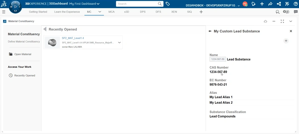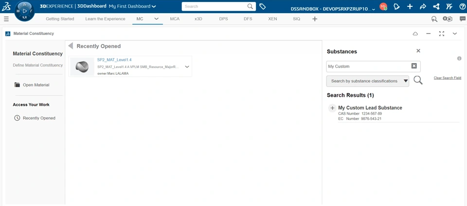 How •You can now import new substances and their classifications from external sources into the 3DEXPERIENCE platform and then use them within the material compositions to assess your products compliancy. •In order to import the external substances, you need to use the ‘Data Factory Studio application’ which is available with the ‘NETVIBES Data Engineer’ (DAE) Role. |