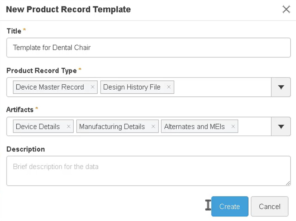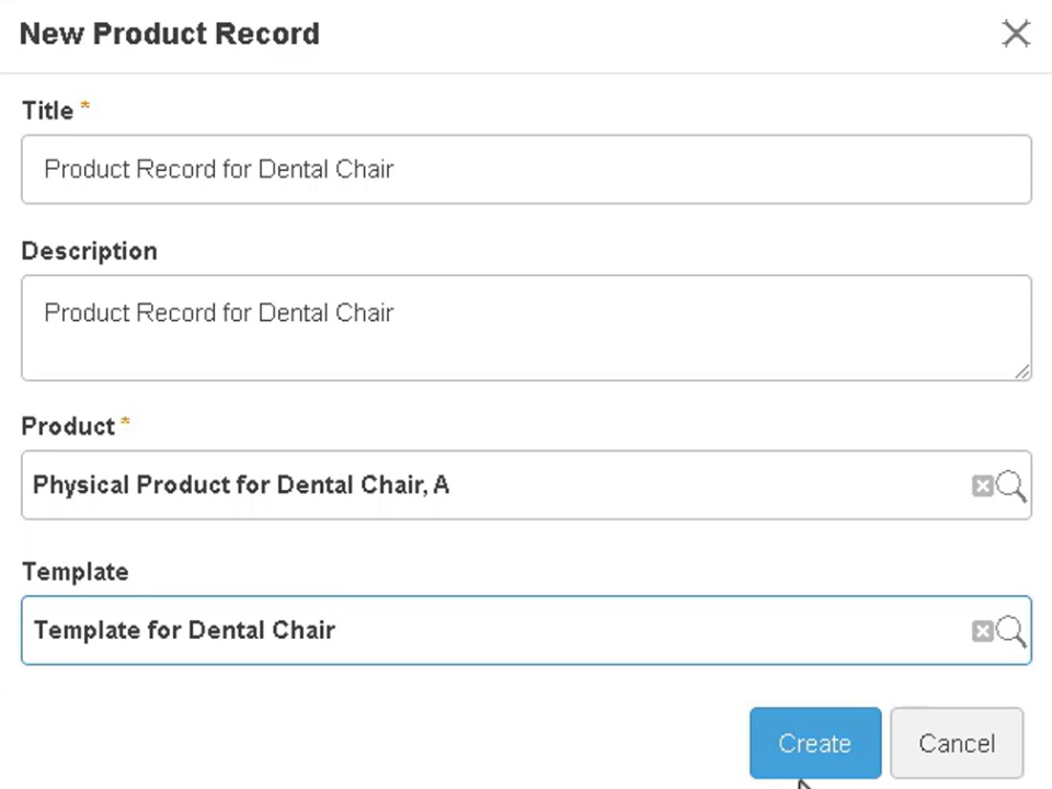 Note: You must Release the Product Record Template to make it available for Product Record creation