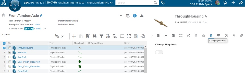 How A new tab “Change (Instance)” is now available, when applying the “ Usage View”, to enable the option “Change Required” on the selected instance. When this attribute is enabled, the instance attributes cannot be modified without Work Under a “Change Action”.