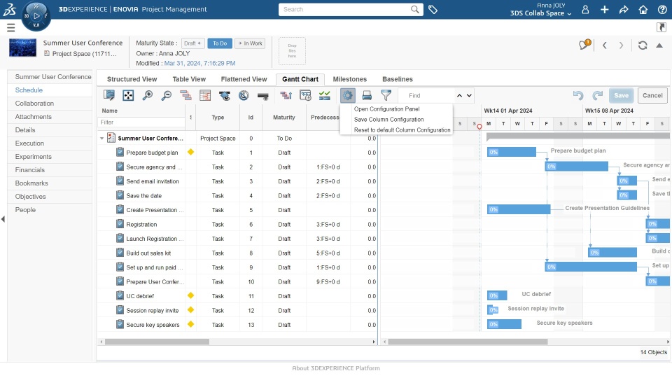 Gantt Table Configuration |