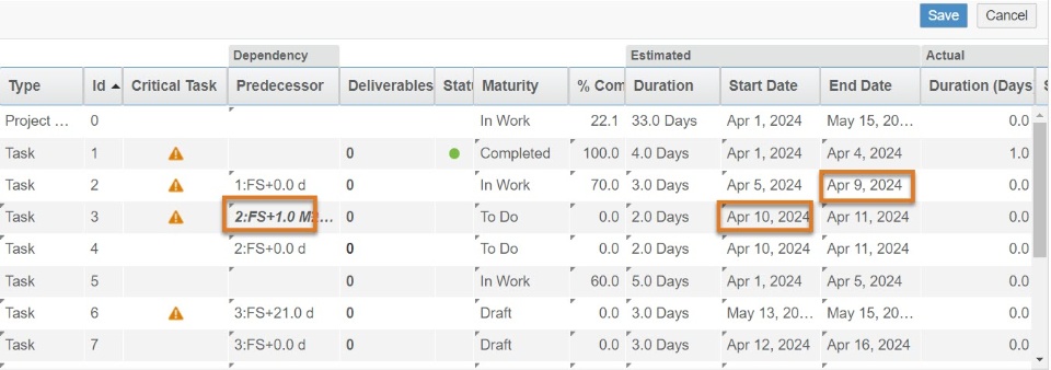 Schedule View in Project Gantt widget |
