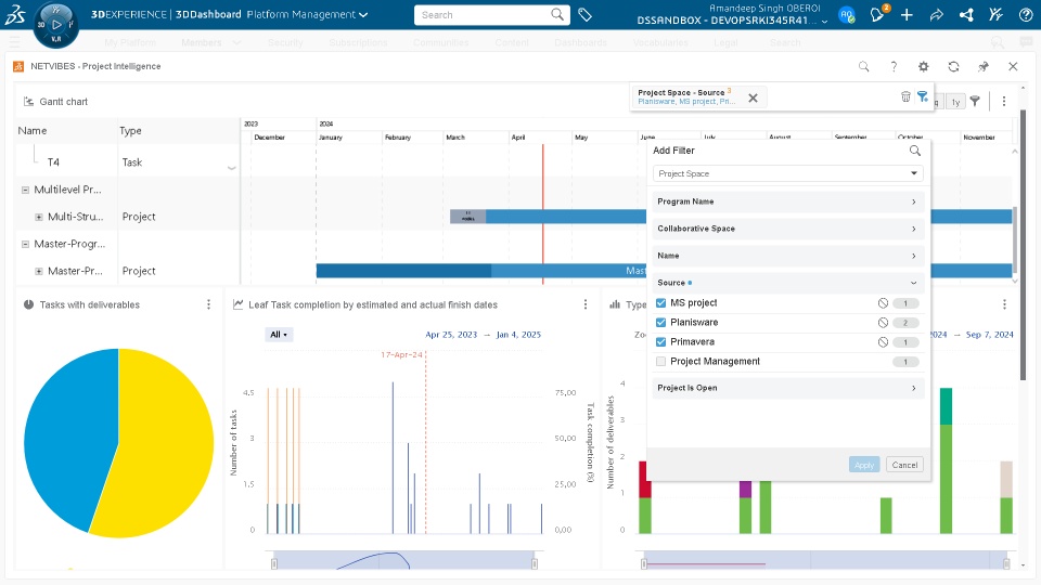 How •You can display imported data, from external sources such as MS Project and Primavera, in Project Intelligence. •You can filter the list of projects according to the external sources. Note: The mapping of the external projects data schema and the import project process are available in NETVIBES Data Engineer (DAE-OC) role using the ‘Data Factory Studio’ application.