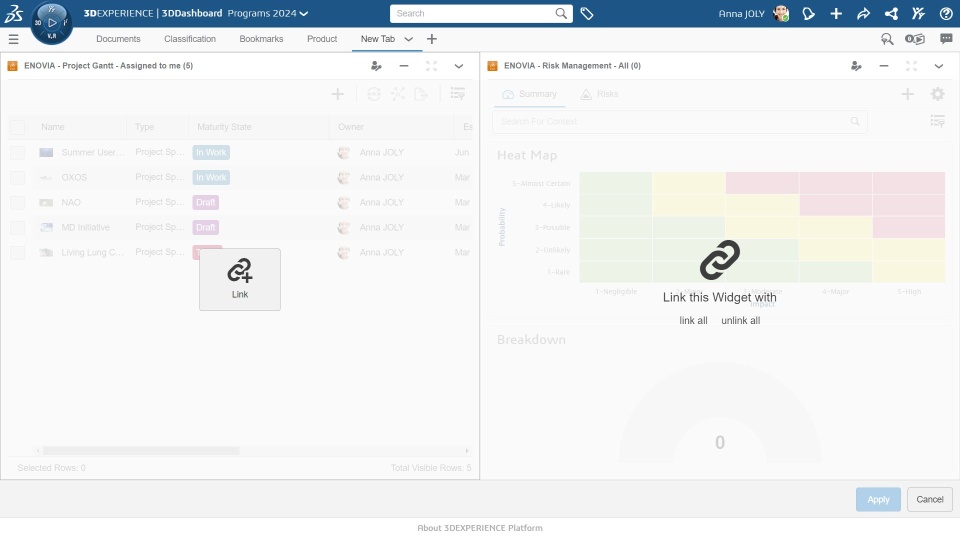 Link between Project Gantt widget and Risk / Opportunities Management widget |