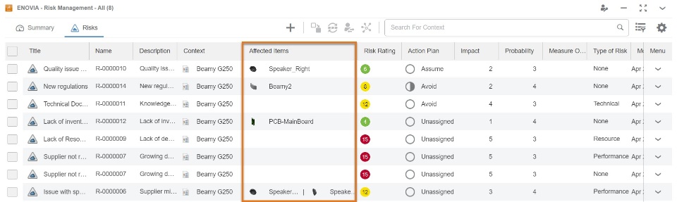 How You can now see and access the Affected Items associated with the Risks directly from the Risk data grid view.